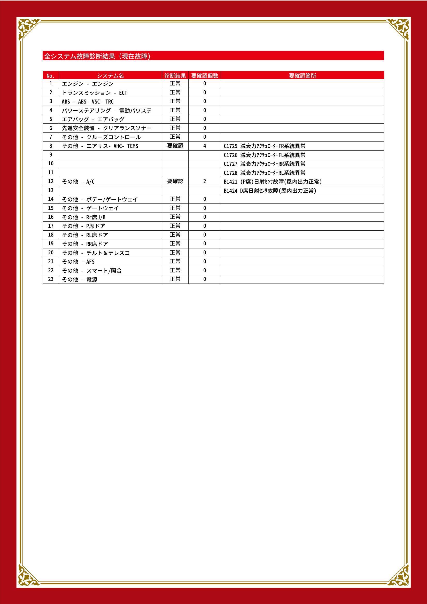 計50項目 もしもの故障に備えた1年間保証をお付して販売させていただきます!!保証内容のグレードアップも別途費用にて可能です!! |