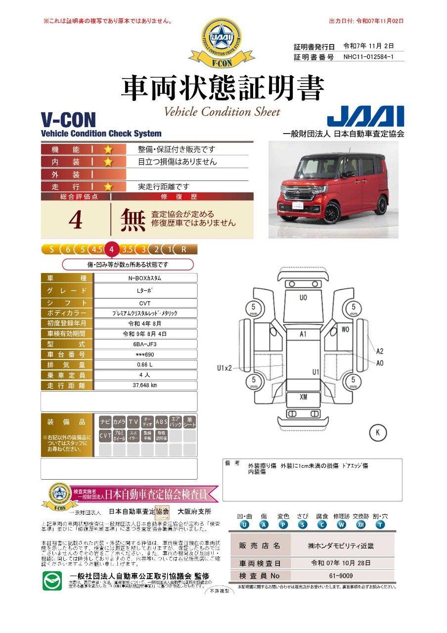 ◆車両状態証明書◆一般財団法人日本自動車査定協会京都府支所発行の車両状態証明書です。 22