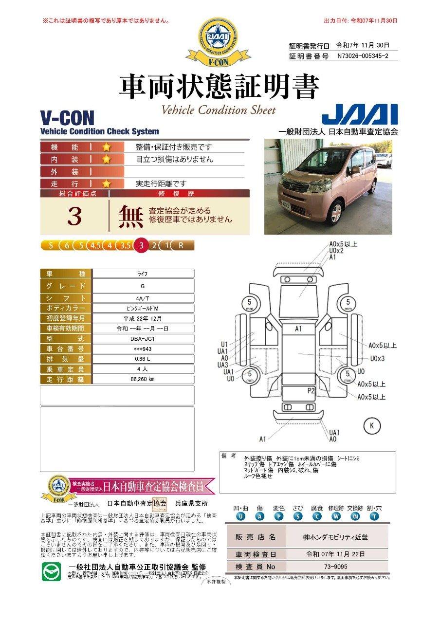 Honda中古車商品化整備基準に基づく法定12か月点検整備を実施致します。分解整備記録簿もお渡し致しますので、より安心してお乗りいただけます。。 10
