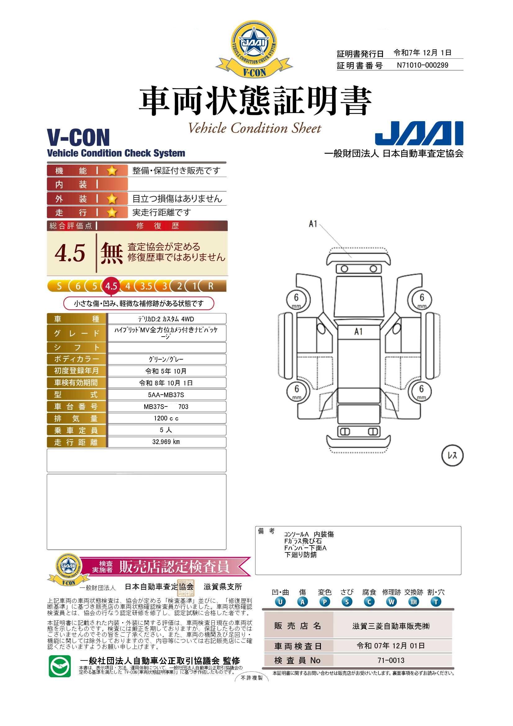 [保証付]:12ヶ月・走行無制限 このおクルマには、「三菱認定UCAR」で保証期間は1年間が付いております。全国の三菱ディラーでお受けいただけるのでご安心ください。さらに延長保証プラン(プラス1年・プラス2年)もございます。 |