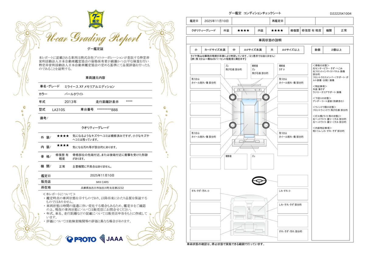 [保証付]:3ヶ月・3000km ※いずれか早い時期が保証適用の条件となります。 Mix Carsの無料保証です。エンジン、足廻り、ミッションの本体部に故障が起きた場合無料保証させて頂きます。その他の部位に関しては延長保証をご用意してますので、お客様に合ったプランをお選び下さい。 |