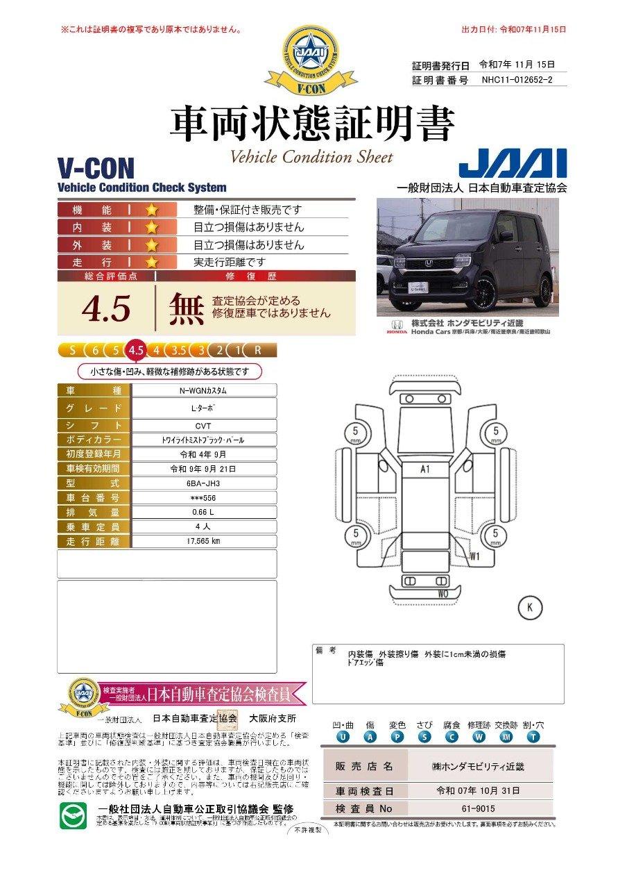 ◆車両状態証明書◆一般財団法人日本自動車査定協会の車両状態証明書です。 6