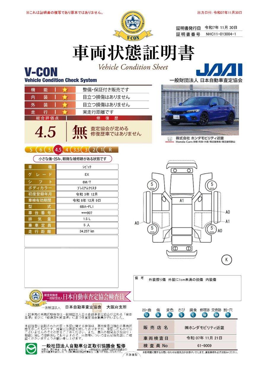 ◆車両状態証明書◆一般財団法人日本自動車査定協会京都府支所発行の車両状態証明書です。 8