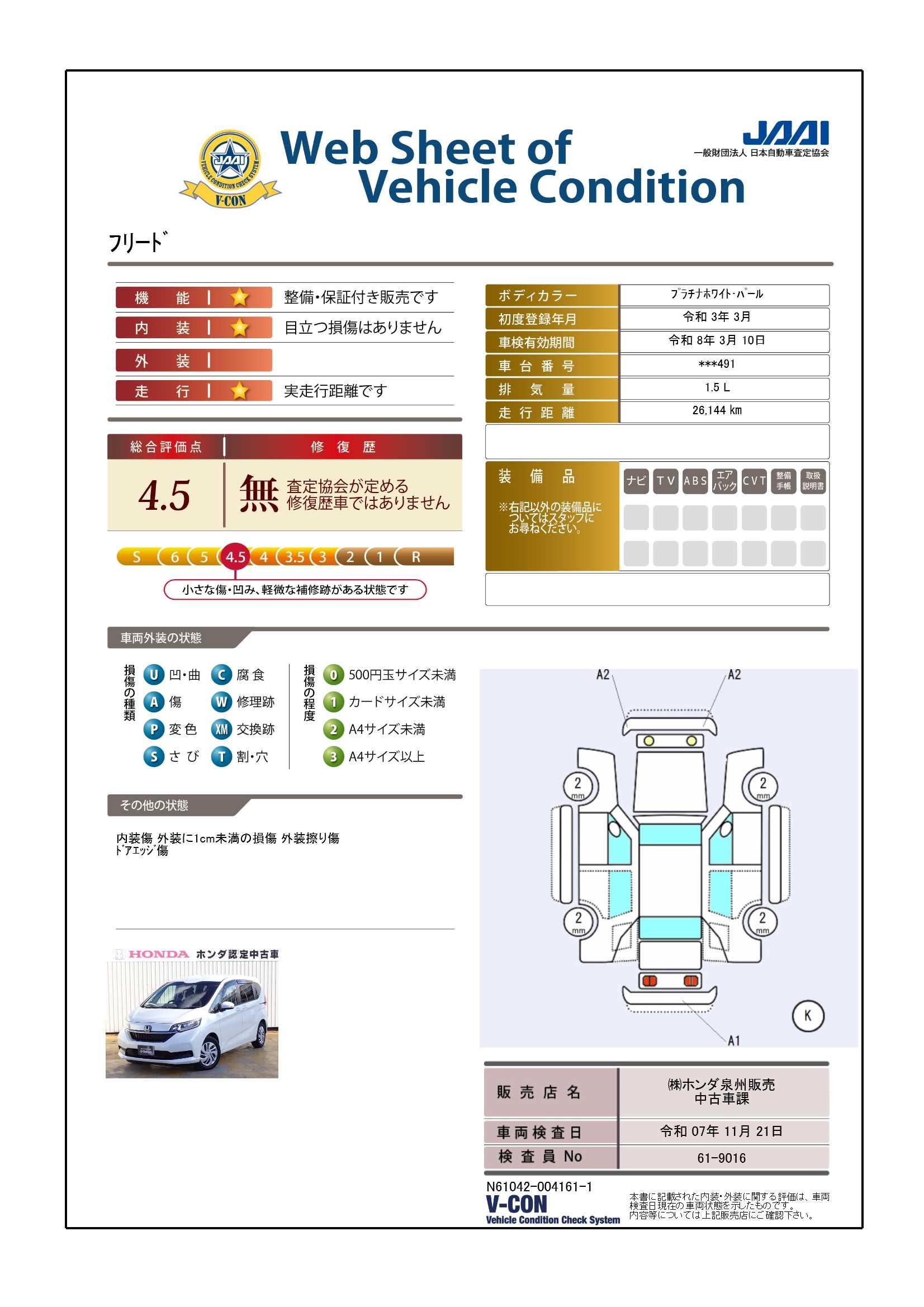 | 保証修理受付先 | 当店へご連絡下さい。お近くのホンダ泉州のサービス工場または全国のHondaディーラーサービス工場をお手配いたします。 |