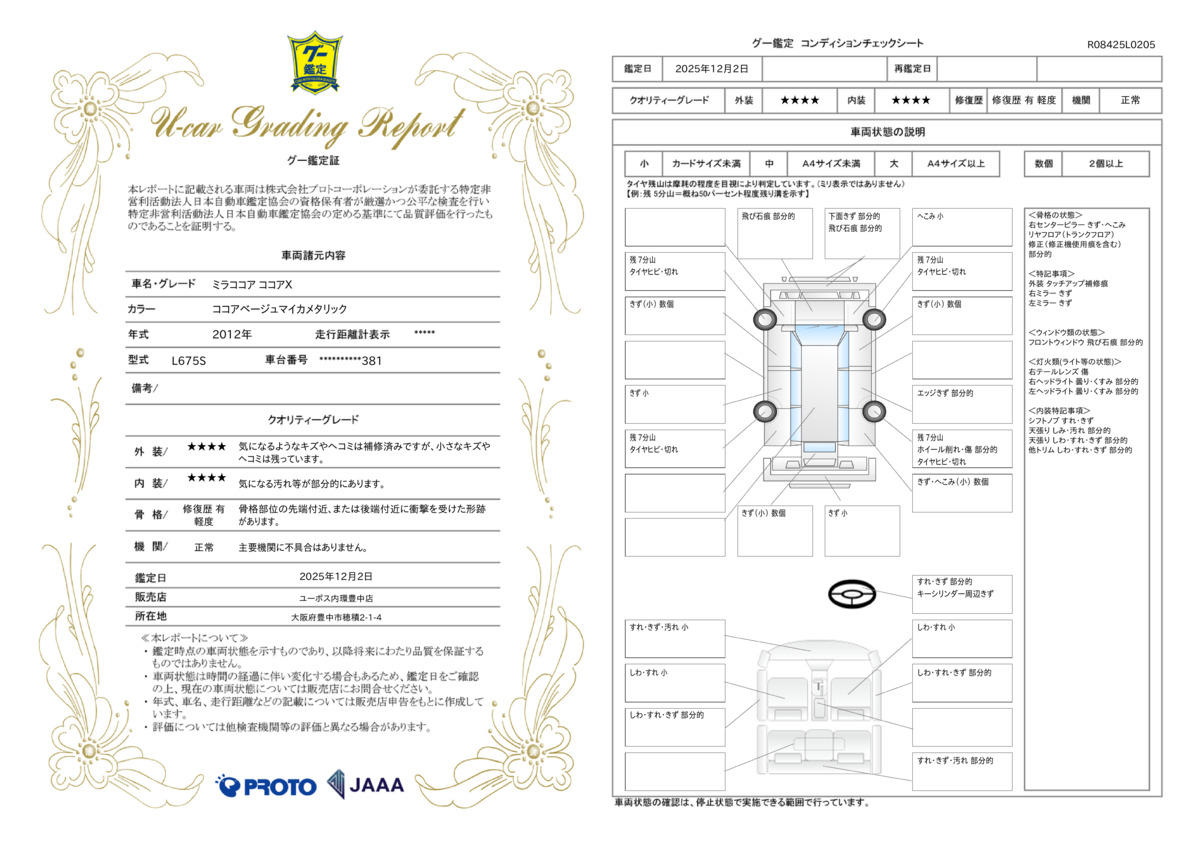 | 保証について | [保証付]:1ヶ月・1000km ※いずれか早い時期が保証適用の条件となります。 |