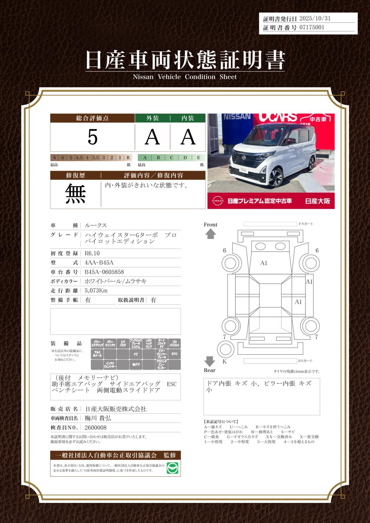 | 保証修理受付先 | 当店へご連絡下さい。日産車のことを知り尽くしたプロが、徹底的にサポートします。(日産車以外もサポートします。)全国の日産サービス工場をご利用いただけるので、万が一のトラブルが発生しても安心です。 |