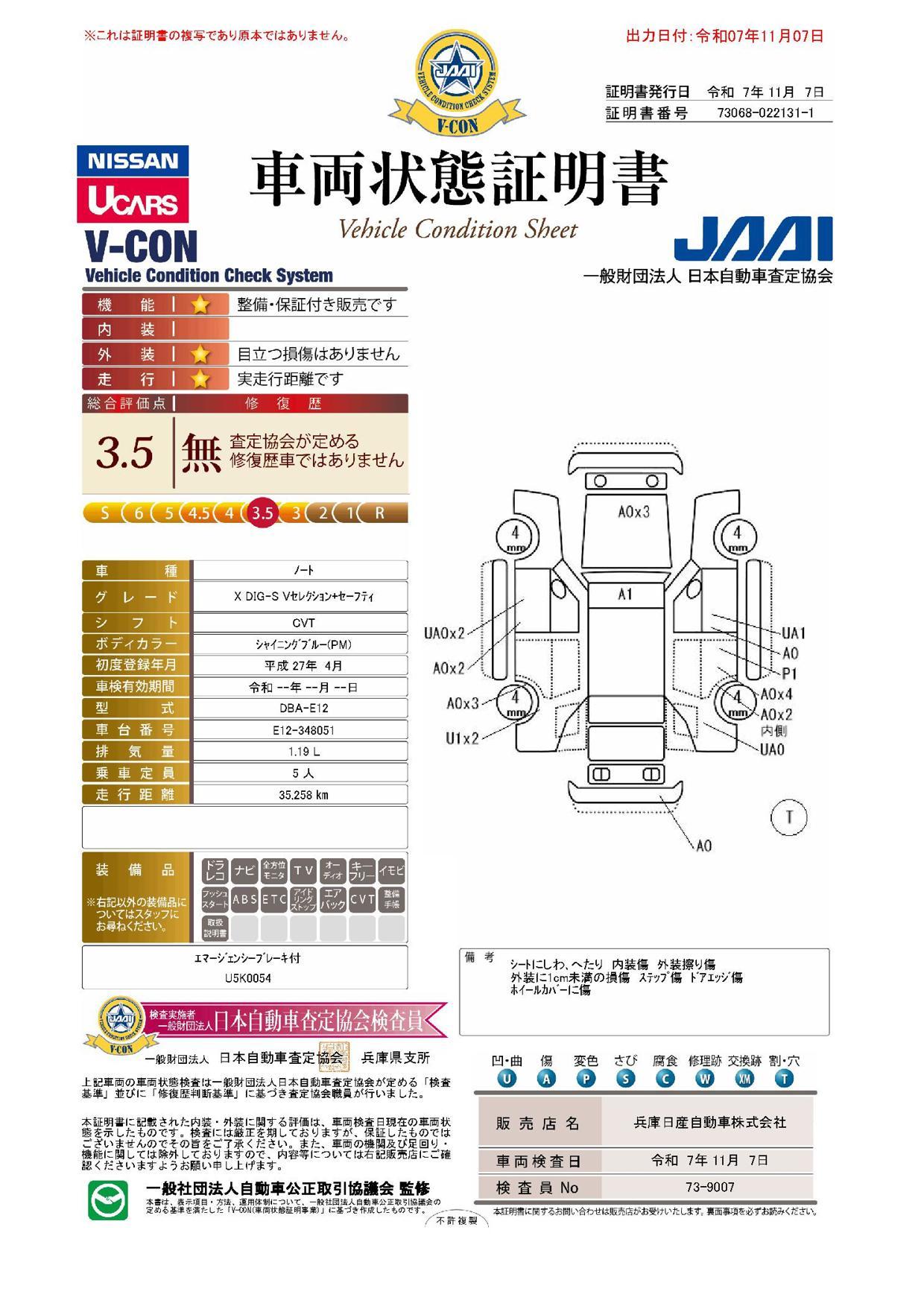 1年保証・走行距離無制限で全国約3.000箇所の日産サービス工場で対応できます。保証料追加でトータル3年まで延長できますので安心です。また納車後は1ヵ月無料点検付きなのでアフターサービスも万全です。