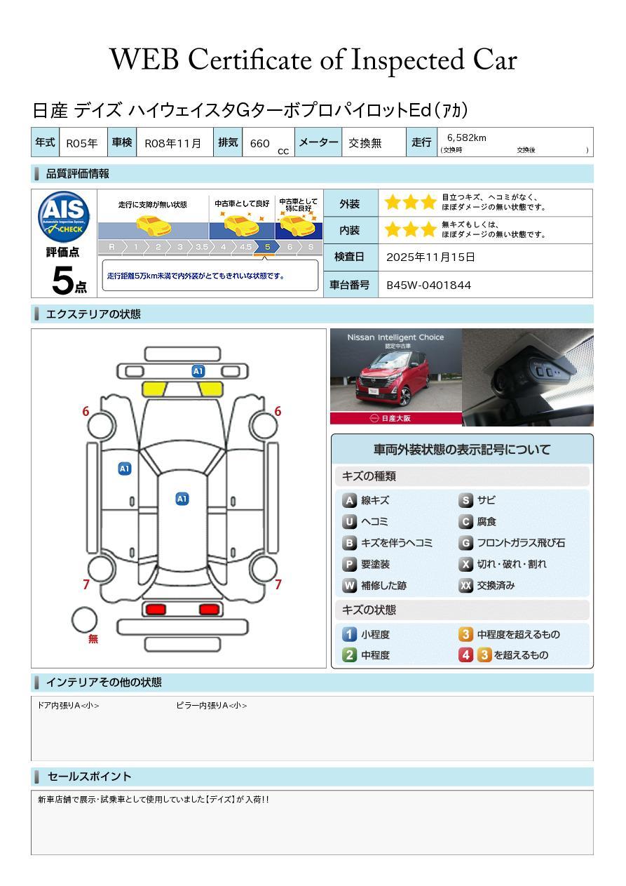 [保証付]:24ヶ月・走行無制限 エンジン、ミッションはもちろんエアコンやパワーウィンドウ等電気まわりも2年間走行無制限保証込価格(後付け部品を除く)。全国の日産サービス工場で保証をお受けできますので遠方の方のご購入も安心です。 |
