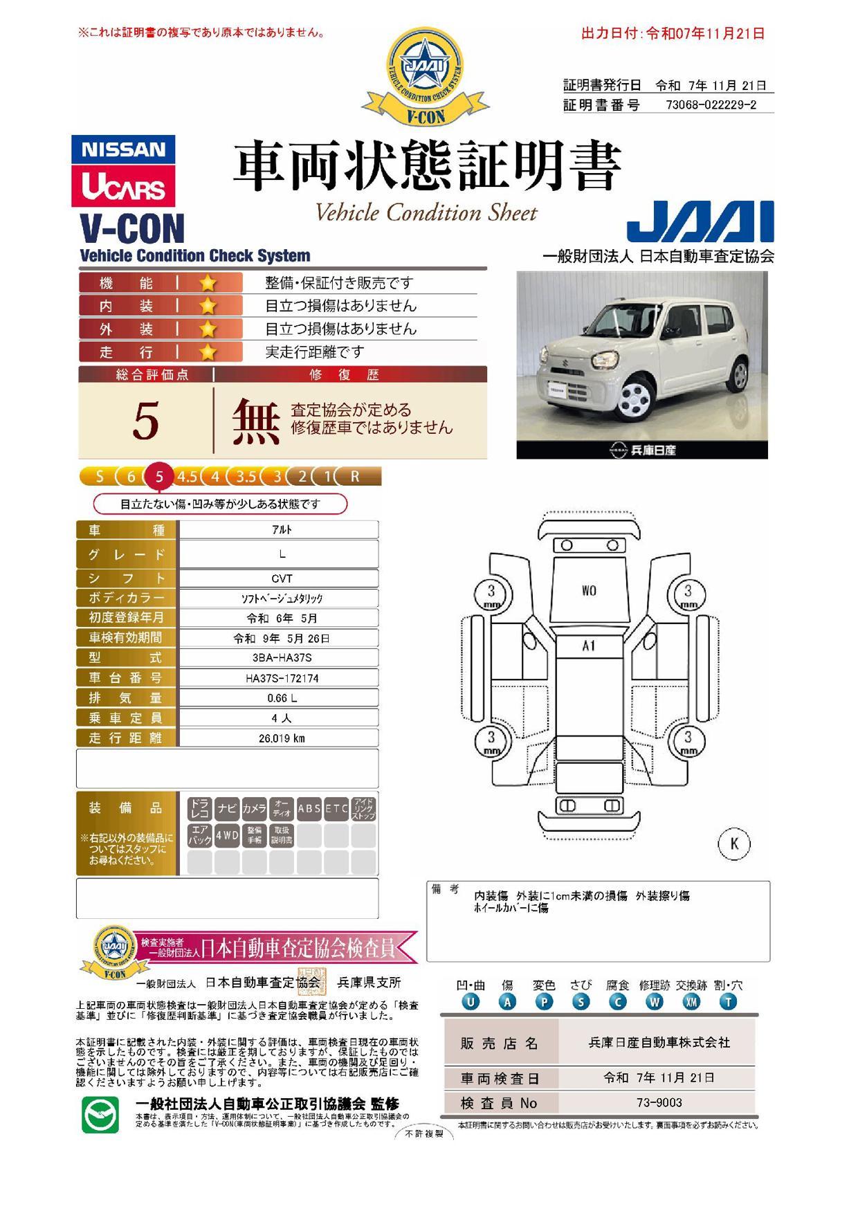 1年保証・走行距離無制限で全国約3.000箇所の日産サービス工場で対応できます。保証料追加でトータル3年まで延長できますので安心です。また納車後は1ヵ月無料点検付きなのでアフターサービスも万全です。