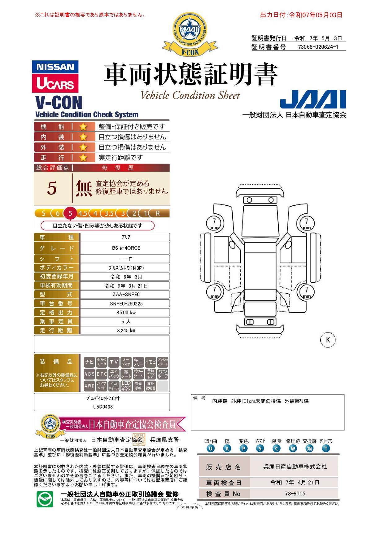 1年保証・走行距離無制限で全国約3.000箇所の日産サービス工場で対応できます。保証料追加でトータル3年まで延長できますので安心です。また納車後は1ヵ月無料点検付きなのでアフターサービスも万全です。