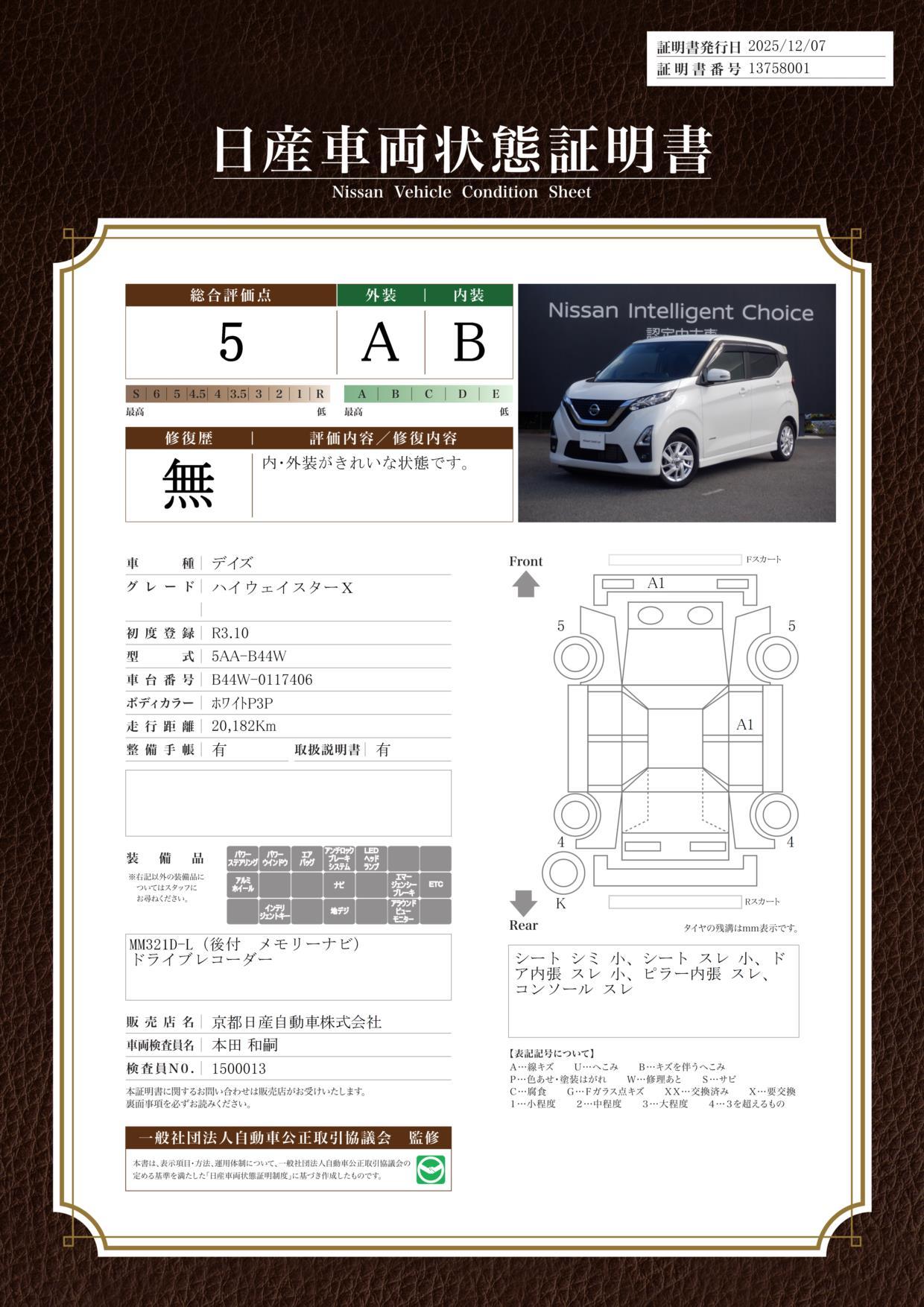 日産の販売店の中古車には、全車無料※で「ワイド保証(1年又は2年)/ワイド保証ライト(3か月)」が付いています。※一部加入できない車両があります。日産ディーラーだからこそ、全国の日産販売店で対応できます。遠方のお客様もご安心いただけます。