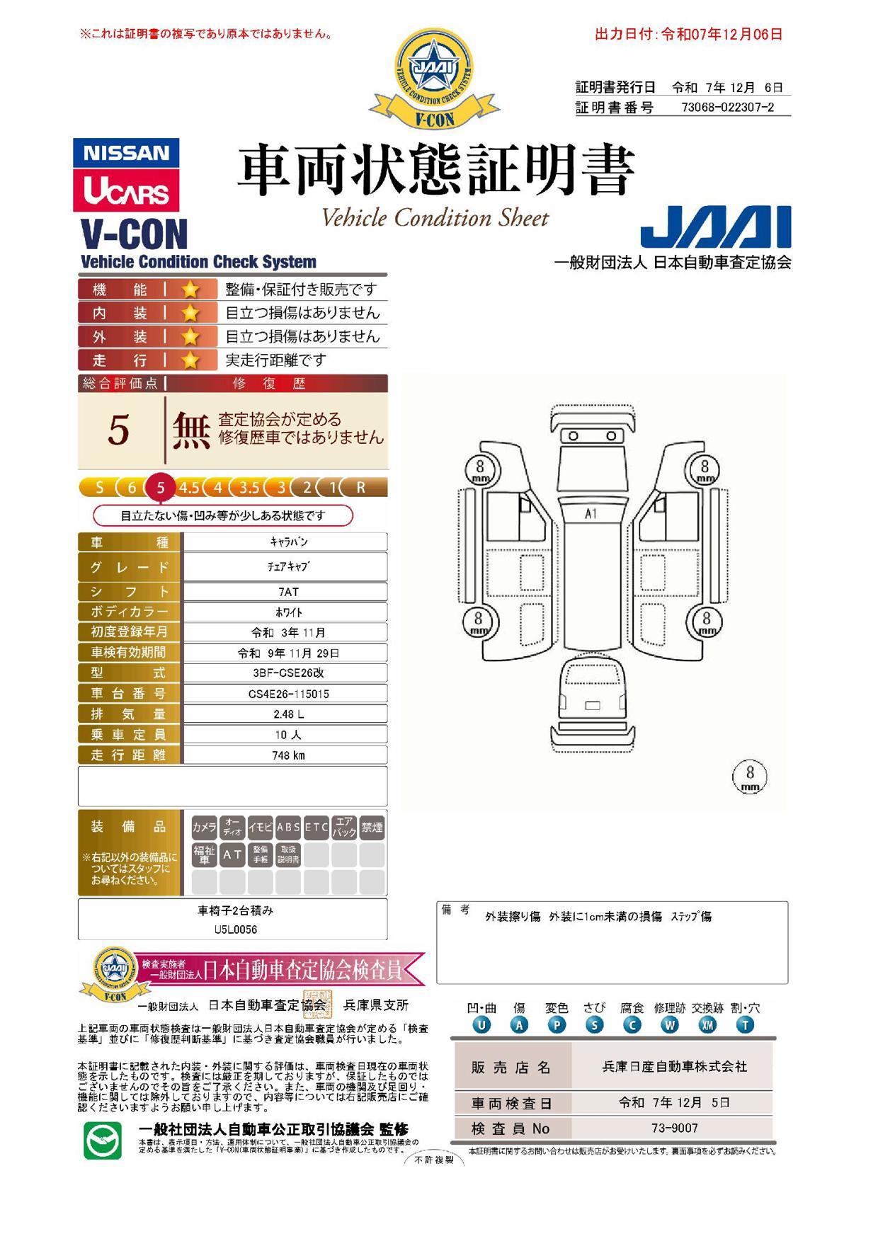 1年保証・走行距離無制限で全国約3.000箇所の日産サービス工場で対応できます。保証料追加でトータル3年まで延長できますので安心です。また納車後は1ヵ月無料点検付きなのでアフターサービスも万全です。