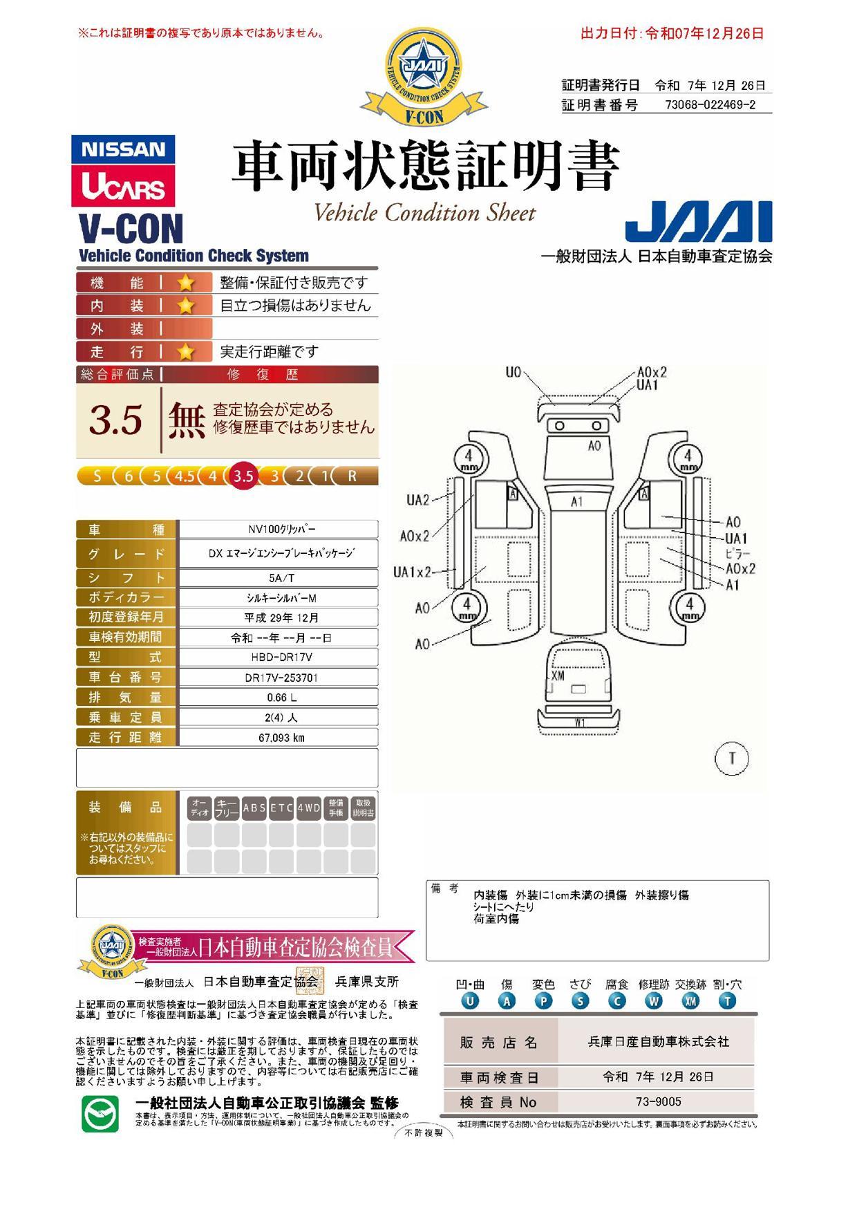 1年保証・走行距離無制限で全国約3.000箇所の日産サービス工場で対応できます。保証料追加でトータル3年まで延長できますので安心です。また納車後は1ヵ月無料点検付きなのでアフターサービスも万全です。