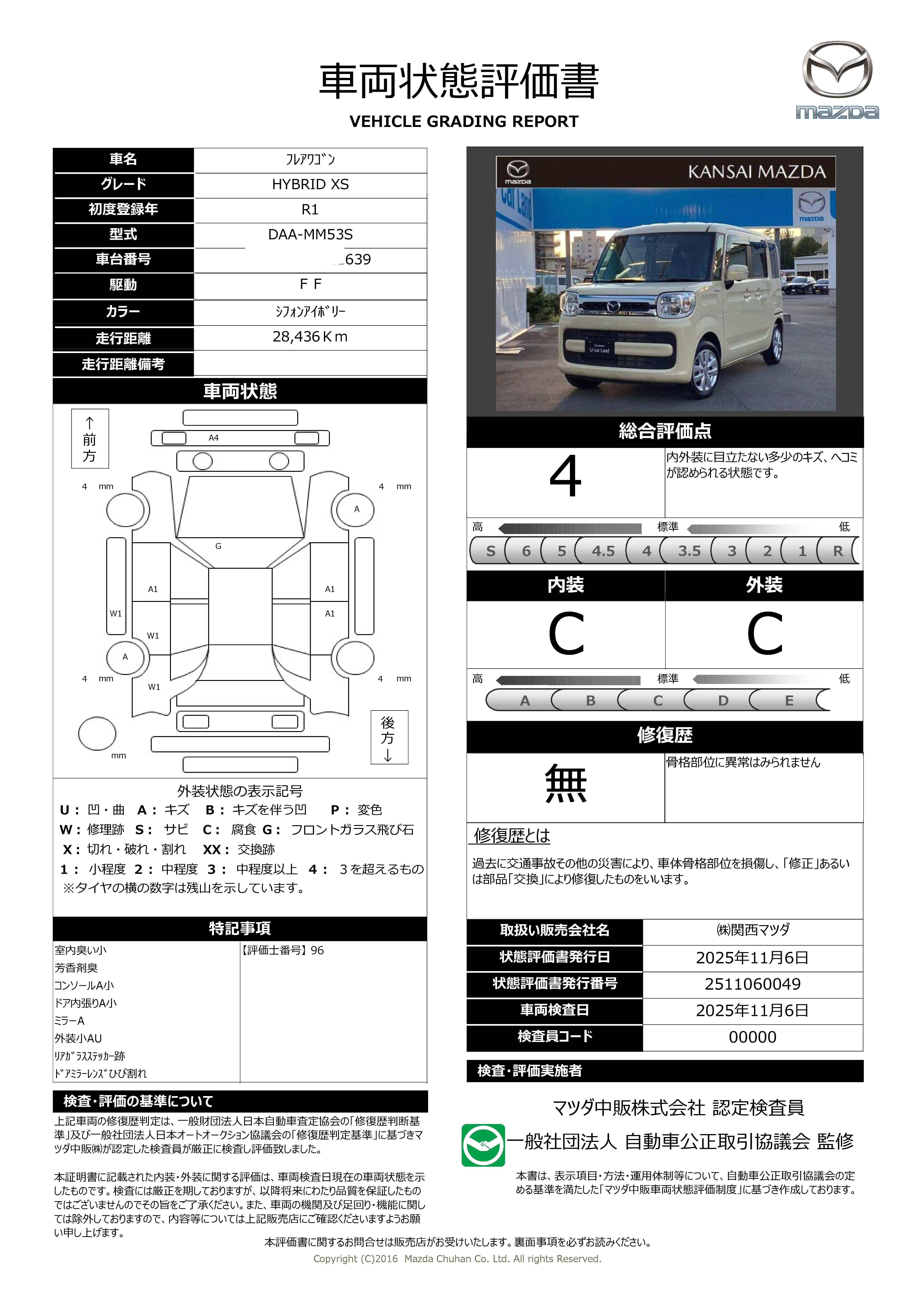 [保証付]:12ヶ月・走行無制限 全国マツダディーラーにて保証対応! ボディの外装部品、内装部品、消耗品、油脂類を除く部品が対象となります。保証期間は1年間で期間中の走行距離は無制限です。また別途有料で延長保証も、ご用意しております。 |