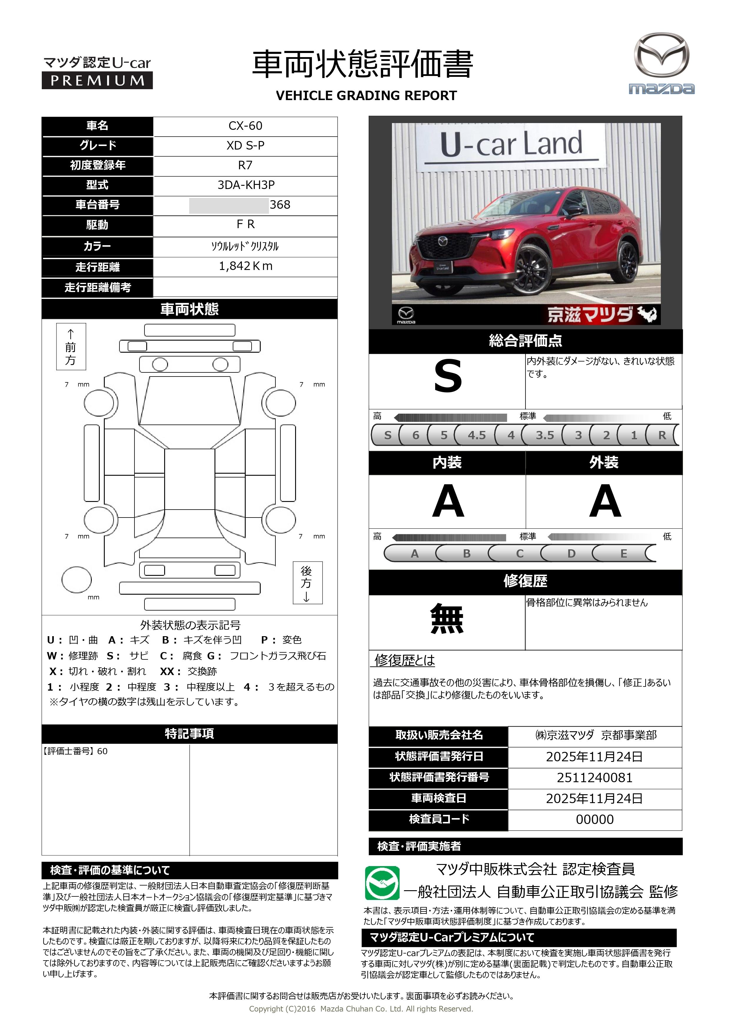 | 保証修理受付先 | 先ずは当店にご連絡ください。全国約800か所のマツダサービス工場で保証修理が可能ですので、旅先やお引越し先でのトラブルもご安心下さい。※マツダブランド車以外は当社のみ対応可能。詳しくはスタッフまで。 |