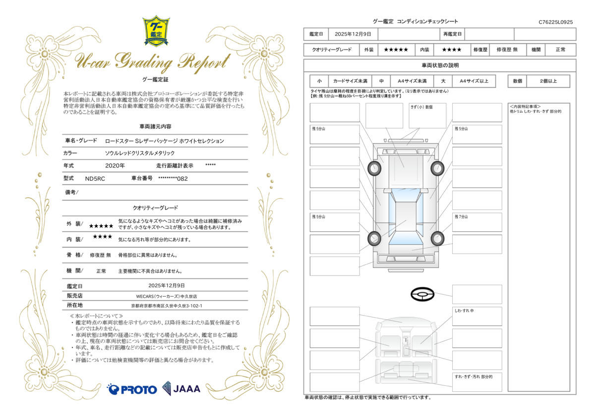 | 保証修理受付先 | 全国のWECARSで修理受付可能です。詳細はスタッフまでお気軽にお問い合わせ下さい。 |