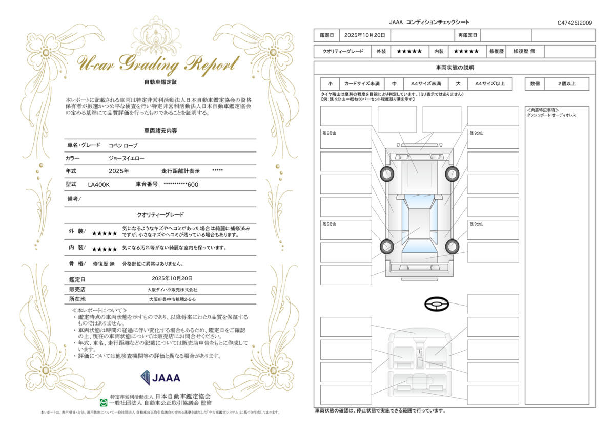 | 保証修理受付先 | 大阪ダイハツご購入店舗までご連絡下さい。全国約700ヶ所のダイハツのお店で新車同等レベルの保証修理が受けられます。お引越し先や旅先でのトラブルにもお近くのダイハツディーラー店が対応いたします。 |