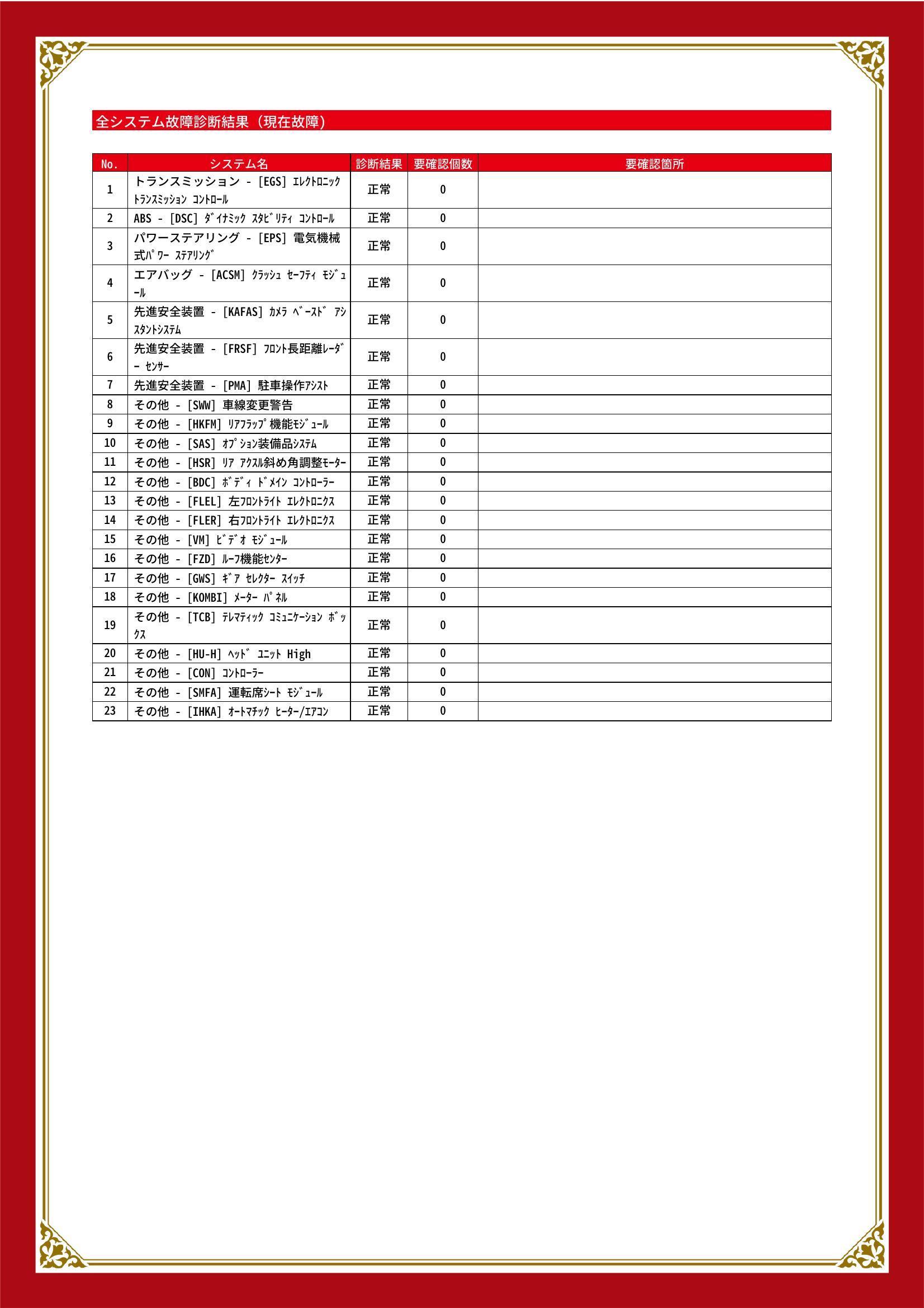 保証項目 1ヶ月以内なら走行距離無制限にてエンジン、トランスミッション、ハイブリッド、ステアリング、ブレーキの各機構における主要項目を無償修理(または交換)いたします。