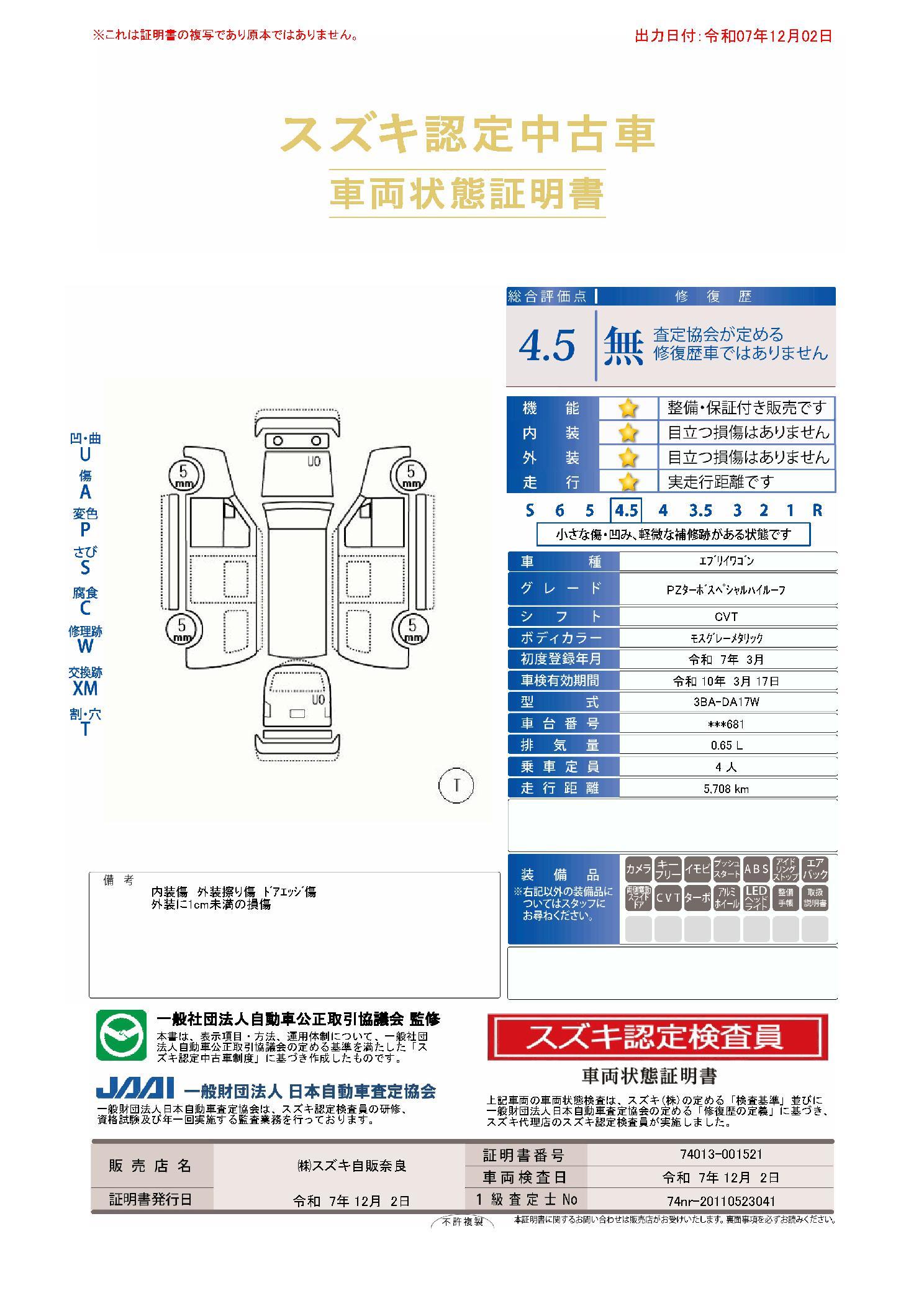 お客様に安心して乗って頂けるように『全車新車保証付き』で販売しておりますので全国スズキ直営店でメンテナンス受けられますので安心です♪