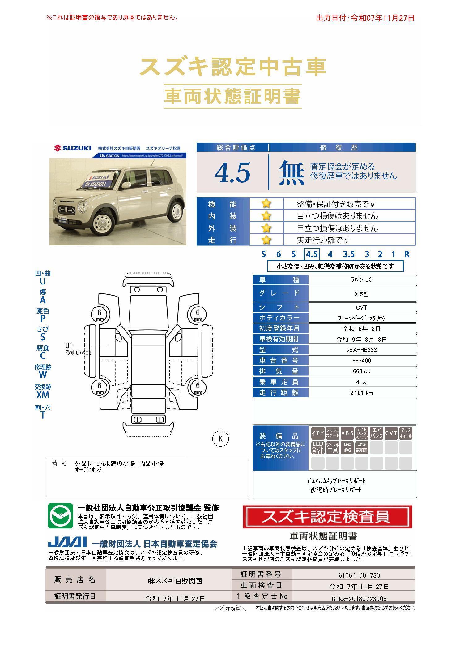 全国スズキディーラー統一保証
