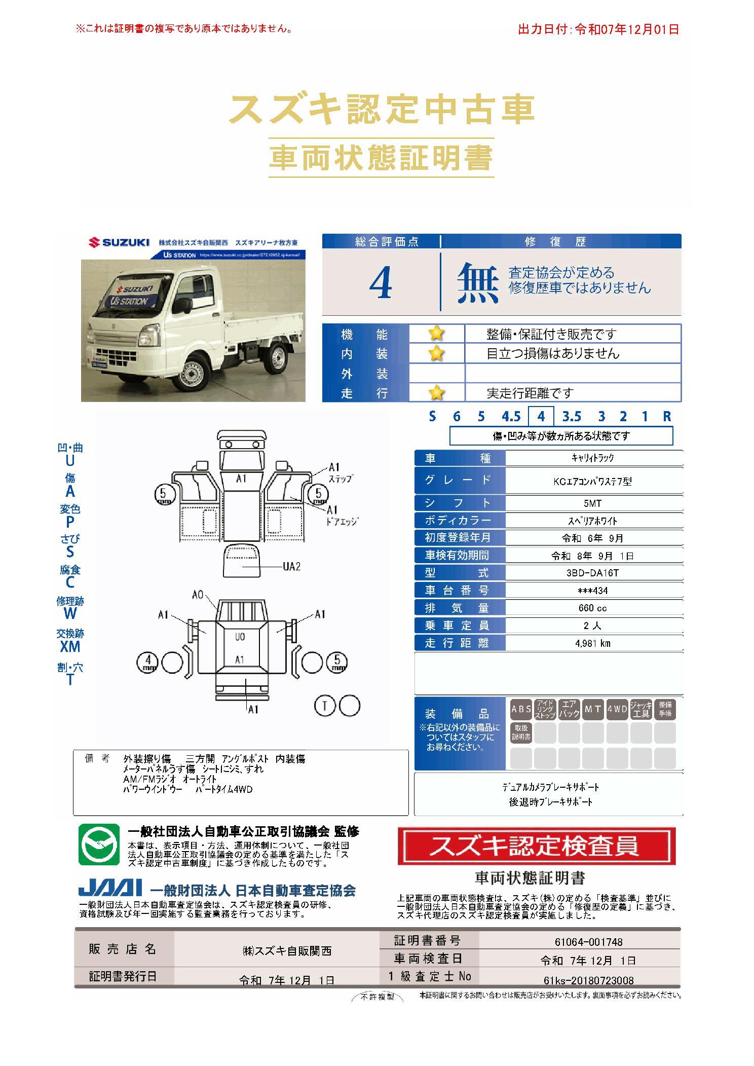 | 保証について | [保証付]:2027(令和9)年9月まで・60000km ※いずれか早い時期が保証適用の条件となります。 |