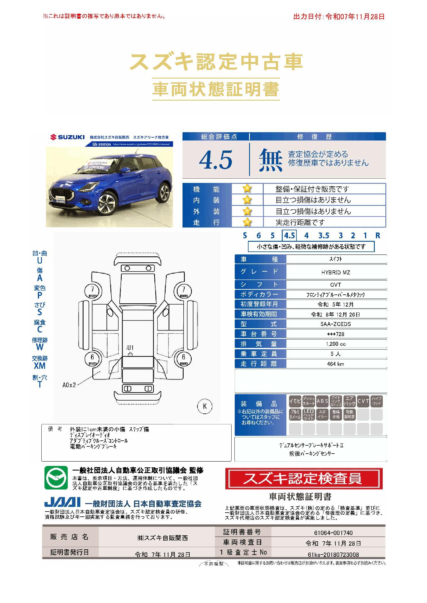 スズキ中古車の基本保証「OK保証」に加えて、オプションの中古車延長保証「OK保証プラス」もご用意。詳しくはスタッフまで。