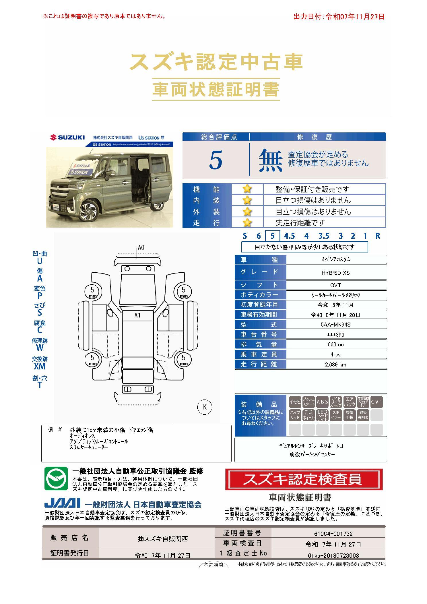 スズキ中古車の基本保証「OK保証」に加えて、オプションの中古車延長保証「OK保証プラス」もご用意。詳しくはスタッフまで。