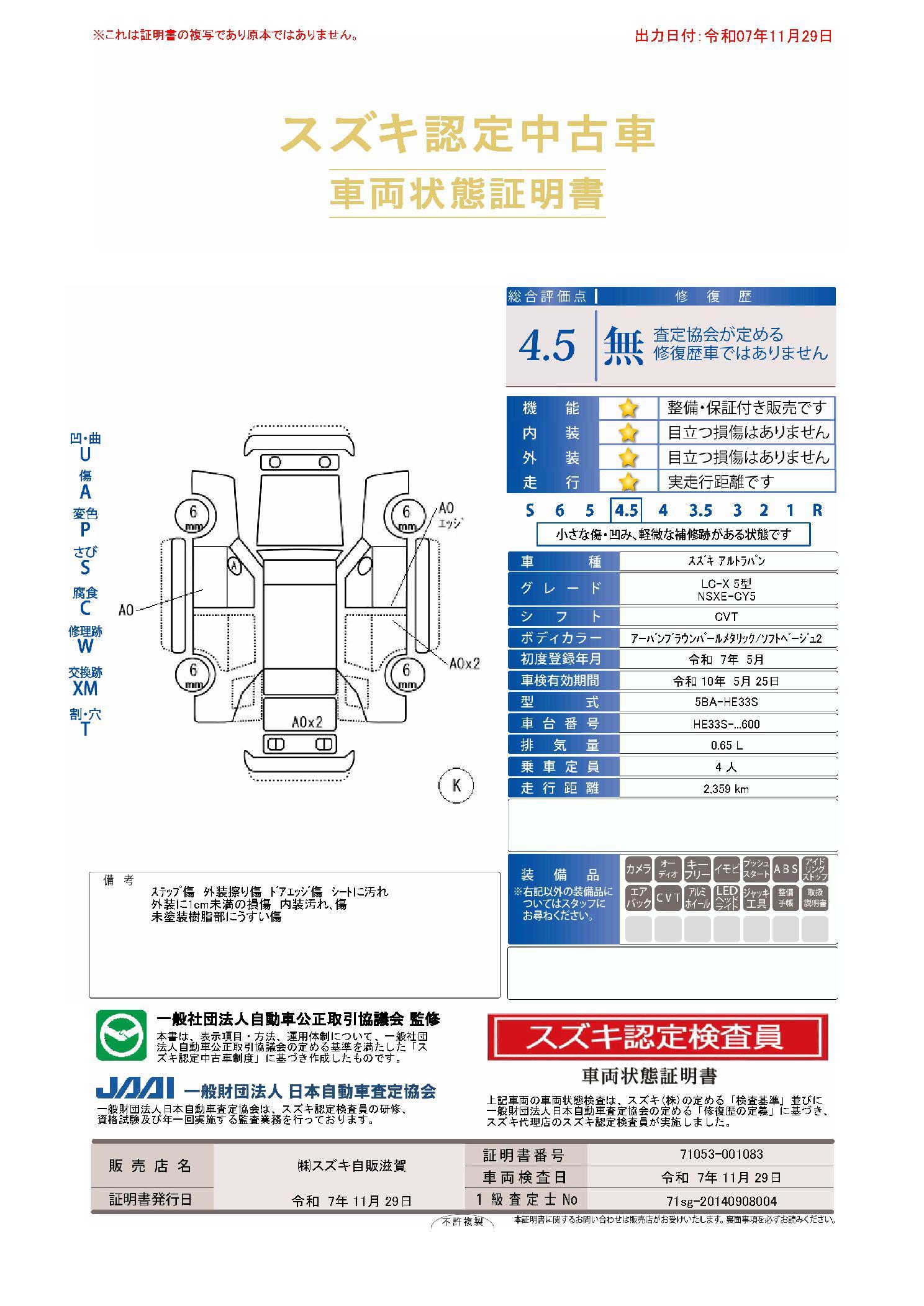 | 保証について | [保証付]:36ヶ月・走行無制限 |