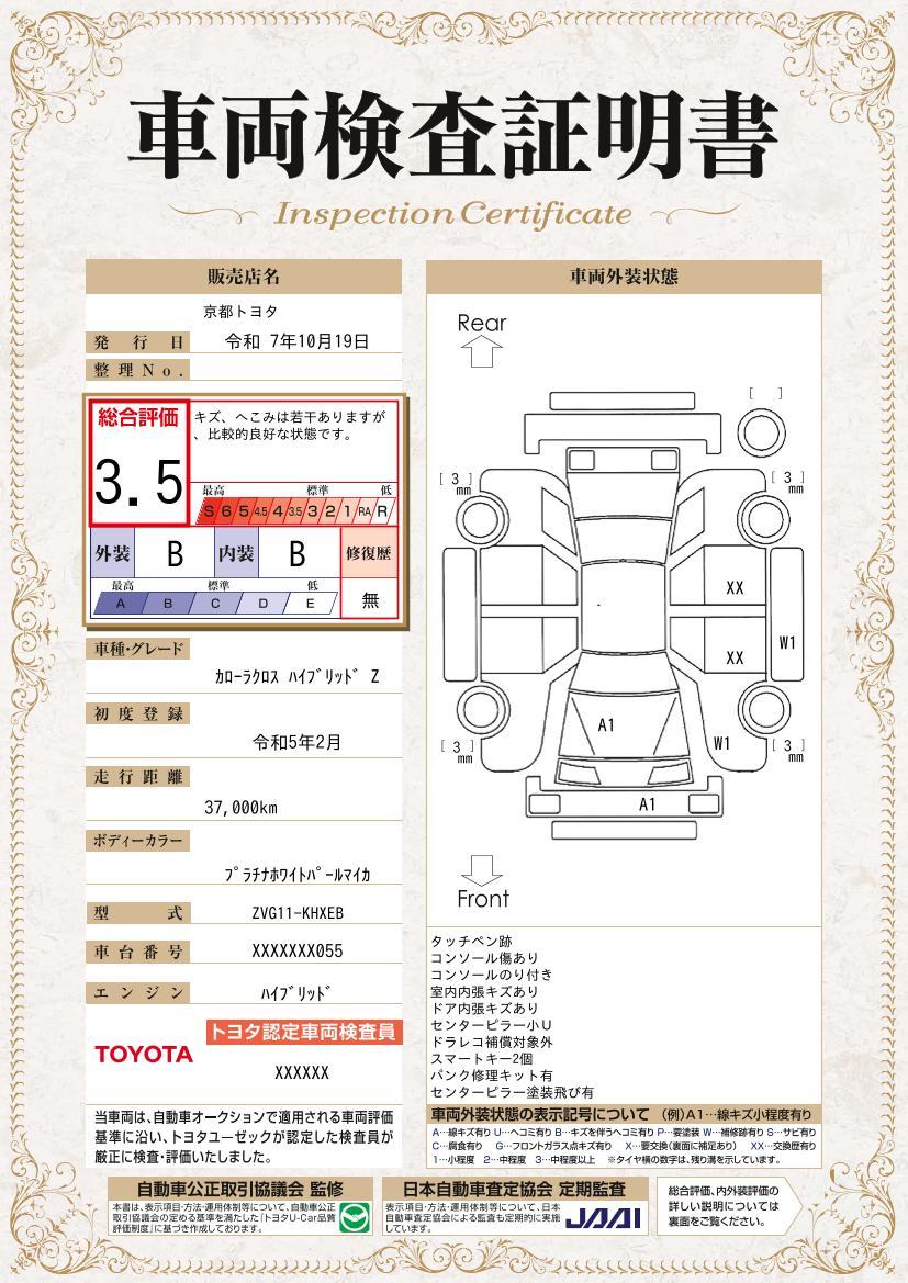 京都トヨタの中古車は、自動車公正取引協議会の定める基準を満たした「トヨタU−Car品質評価制度」に基づき作成した証明書をWEBで開示しておりますので、安心です。