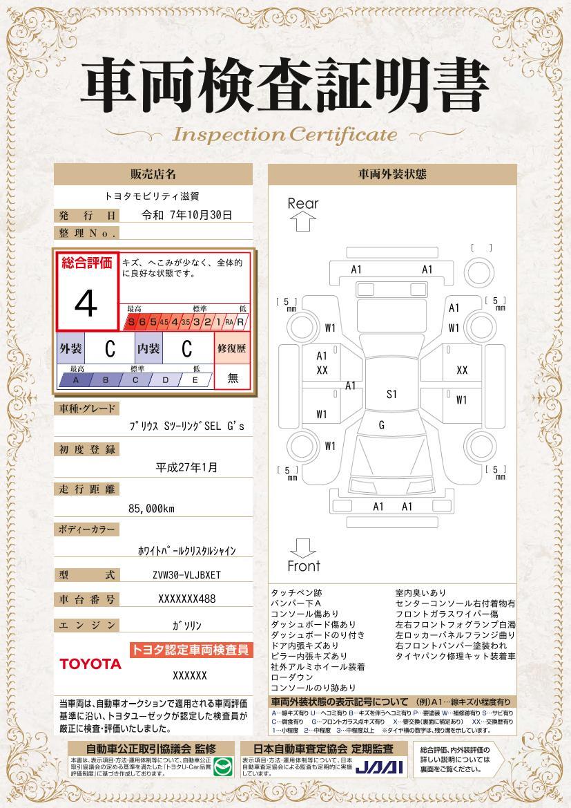 車のキズや修復歴などを一目でわかりやすく表示しております。安心して車選びを楽しんでいただくための証明書です。