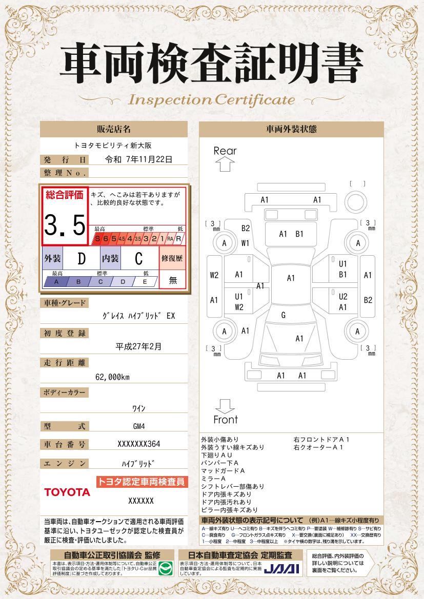 3つの安心を提供いたしております(車内洗浄 車両検査証明書 ロングラン保証)トヨタ認定中古車のハイブリット車にさらに安心がプラスされ中古車ハイブリット保証とハイブリットシステム診断がついております。保証期間は、初度登録年月から10年目まで、または3年目の長い方。走行距離20キロ迄