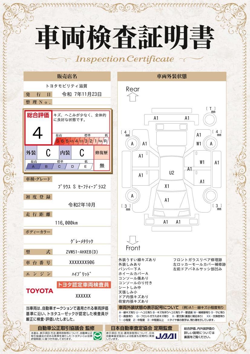 車のキズや修復歴などを一目でわかりやすく表示しております。安心して車選びを楽しんでいただくための証明書です。