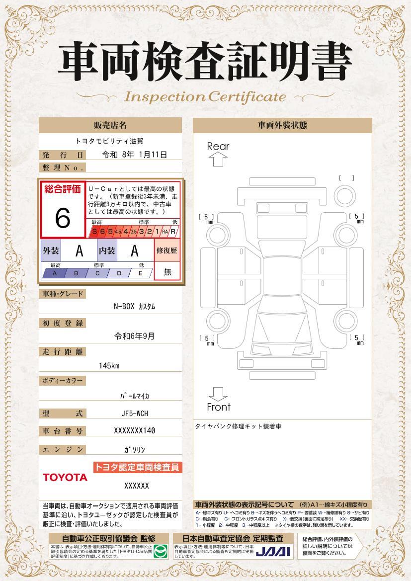 車のキズや修復歴などを一目でわかりやすく表示しております。安心して車選びを楽しんでいただくための証明書です。