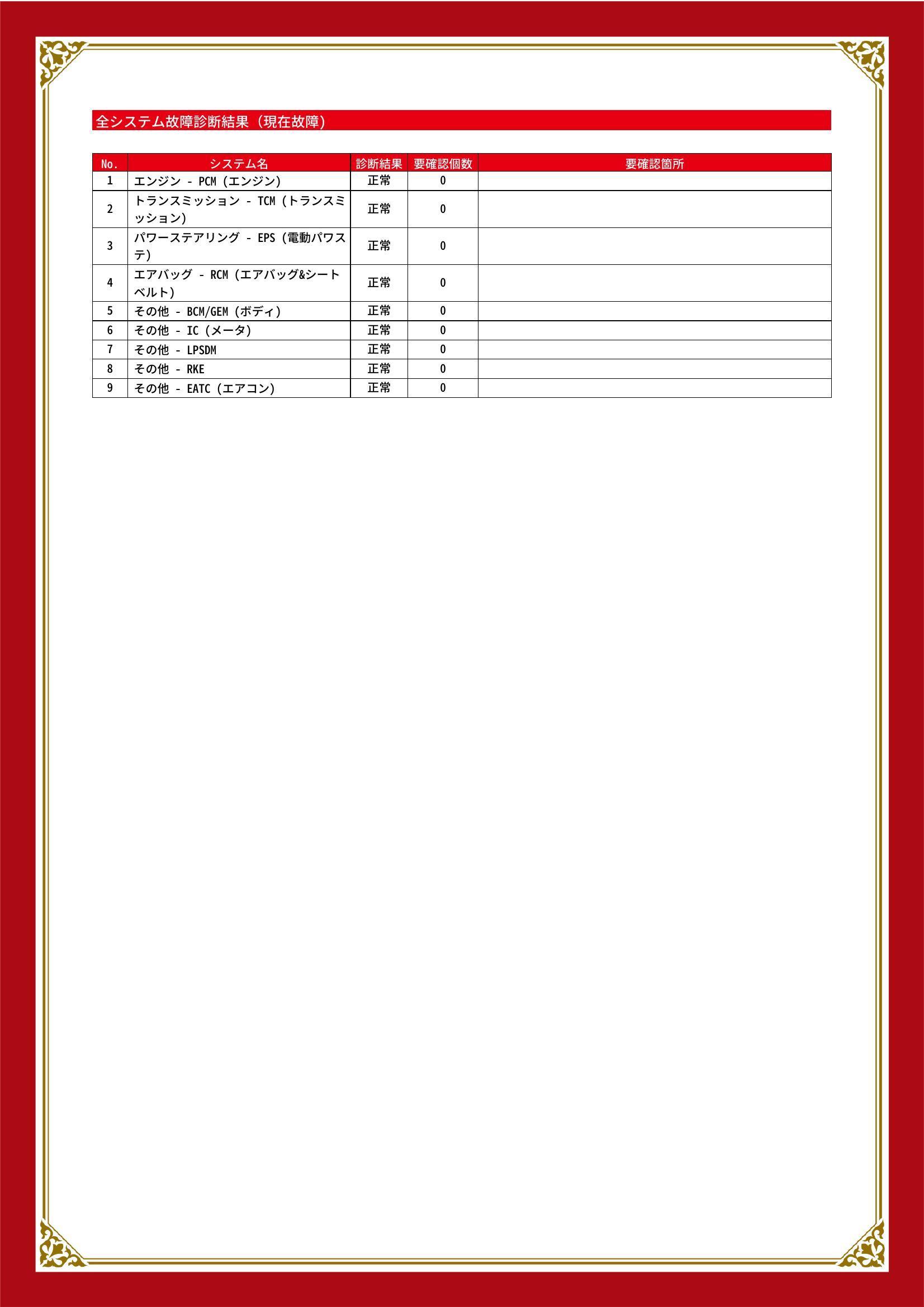 • また、修復歴・法定整備・保証の有無ならびに詳細内容につきましても、必ず各販売店にご確認いただきますようお願いいたします。