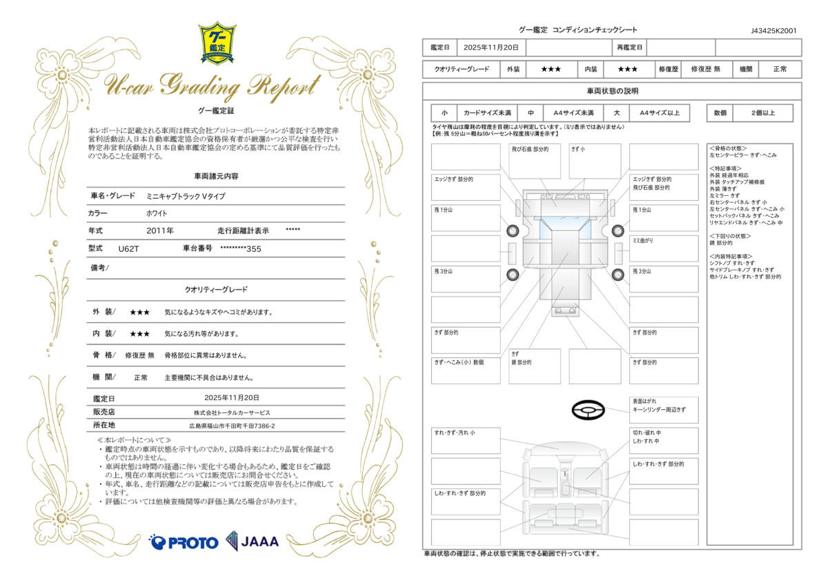 [保証付]:3ヶ月・3000km ※いずれか早い時期が保証適用の条件となります。 ●3か月又は3,000km保証 ●12か月法定点検(初年度登録より12か月未満の車両は6か月点検) ●エンジンオイル交換 ●フロントワイパーゴム交換 ●車検不適合箇所整備 ●現状不具合カ所修理 |