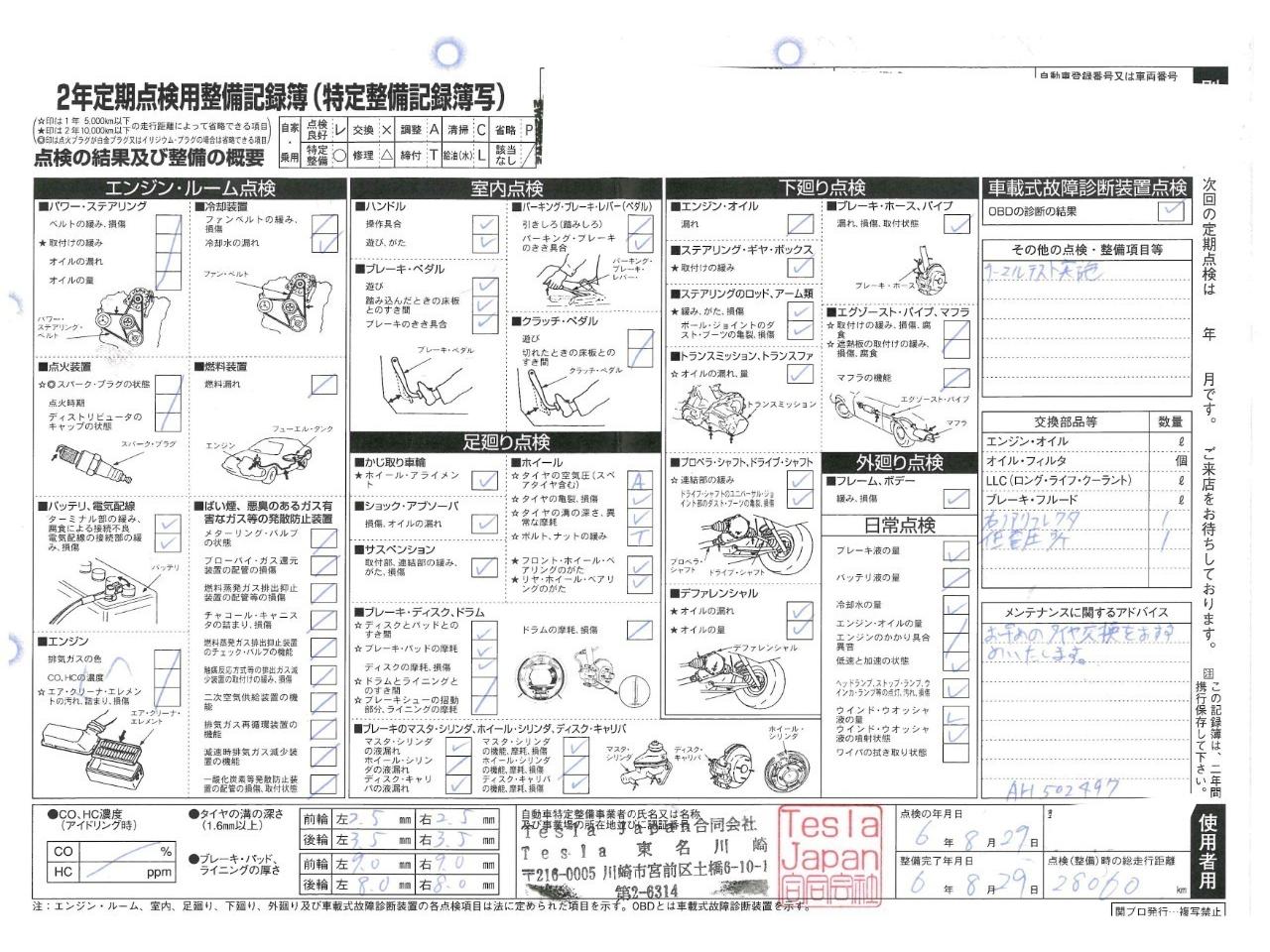 | エンジンオイル・エンジンオイルフィルター・バッテリー・ブレーキフルード・エアコンフィルター・フロントワイパーゴム・クーラントブースター・エアフィルター・エンジンインジェクタークリーナーを新品交換!!! |