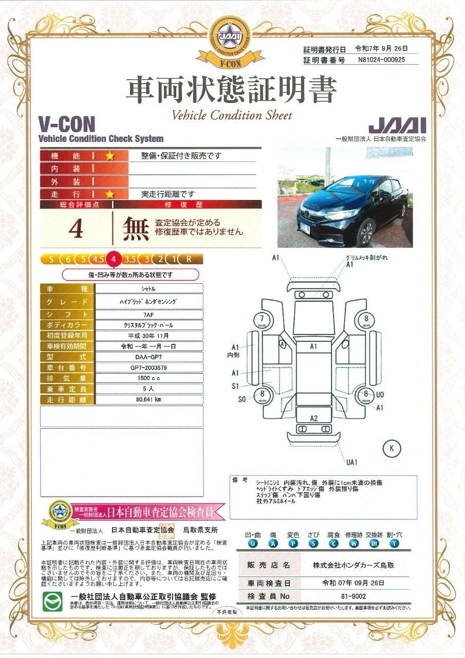 [保証付]:4年・走行無制限 ホンダ認定中古車は、1年間距離数無制限保証をお付けします。消耗品・油脂類・ボディー内外装部品・社外部品以外の部品が保証対象です。全国のホンダカーズでご対応可能です。延長保証も併せてご検討下さいませ。 |