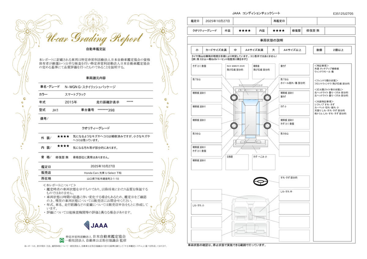 | 保証項目 | 消耗品を除くエンジン・ブレーキ・サスペンション・カーナビ等、保証書に指定した幅広い対象部品を保証します!詳しくはスタッフまで問い合わせください! |
