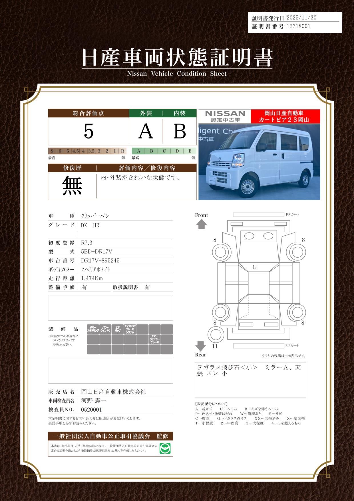 [保証付]:24ヶ月・走行無制限 購入後の保証付きです☆走行距離無制限で対象パーツを1年間無料保証☆万が一の時は、全国の日産サービス工場で安心サービスが受けられます!!遠方の方でもお気軽にご相談ください! |