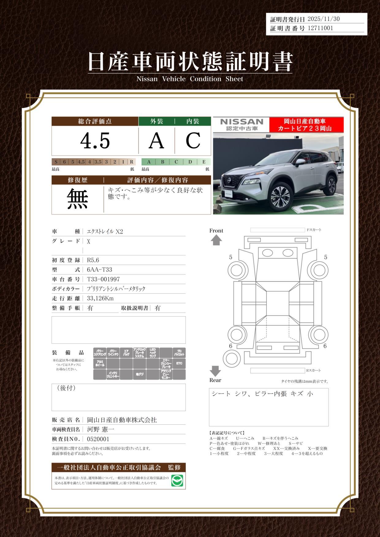 [保証付]:24ヶ月・走行無制限 購入後の保証付きです☆走行距離無制限で対象パーツを1年間無料保証☆万が一の時は、全国の日産サービス工場で安心サービスが受けられます!!遠方の方でもお気軽にご相談ください! |