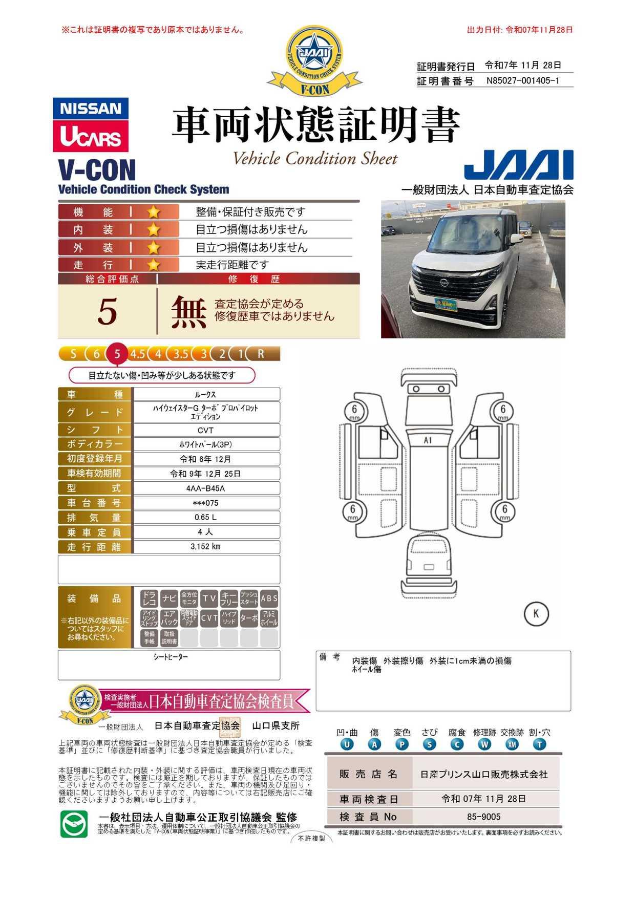 | フロントガラス及びフロント左右ガラスに日産オリジナルの強力撥水コートを施工!また、フロントワイパーは新品のもに交換致します。夜の雨の日に強い味方!おクルマの購入の際に是非ご一緒にご検討ください。 |