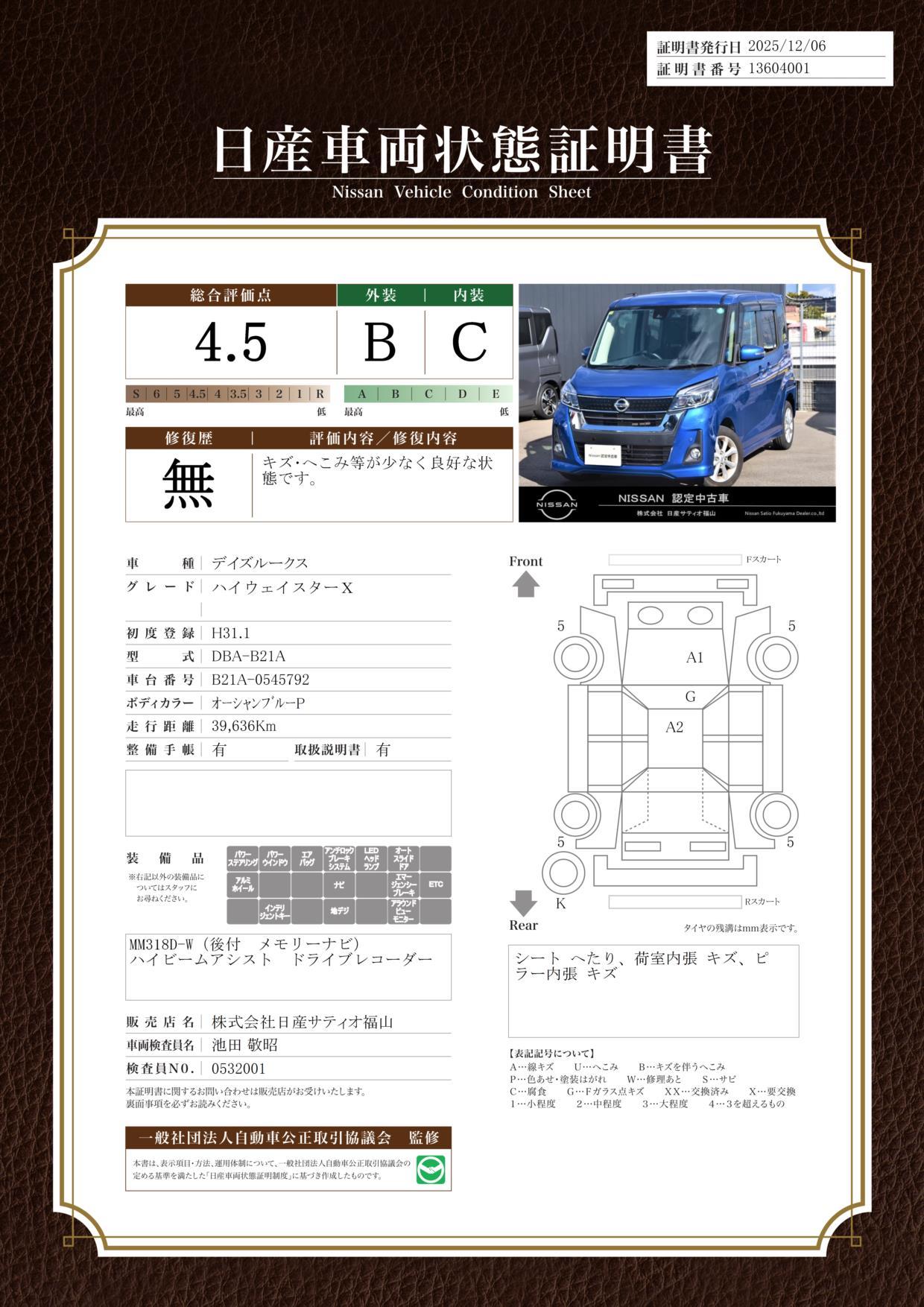 基本的に油脂類、消耗品以外が保証対象です。もちろん、室内装備やエアコン、ステレオ類も保証対象です。認定車両は12ヶ月間(走行距離無制限)です。全国日産ディーラーで対応!安心の納車後1ヶ月・1000km無料点検付きです。
