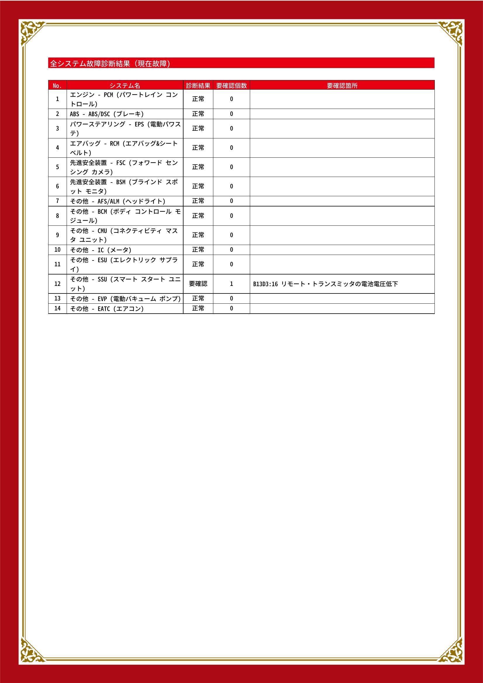 安心のディーラー保証付き、保証内容範囲は●エンジン内部機構●動力伝達機構●ステアリング機構●サスペンション機構●電子制御機構●乗員保護機構●ブレーキ系統●クラッチ系統●電気系統●冷却系統●燃料系統●純