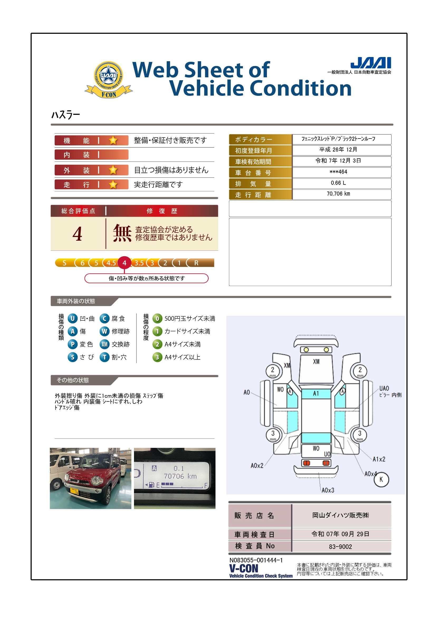 [保証付]:12ヶ月・走行無制限 有償延長保証:対象 |