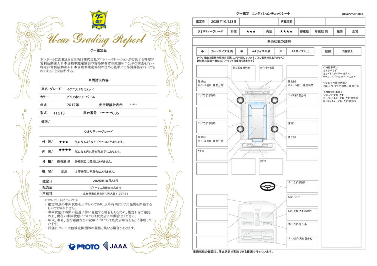 | 保証について | [保証付]:3ヶ月・3000km ※いずれか早い時期が保証適用の条件となります。 |