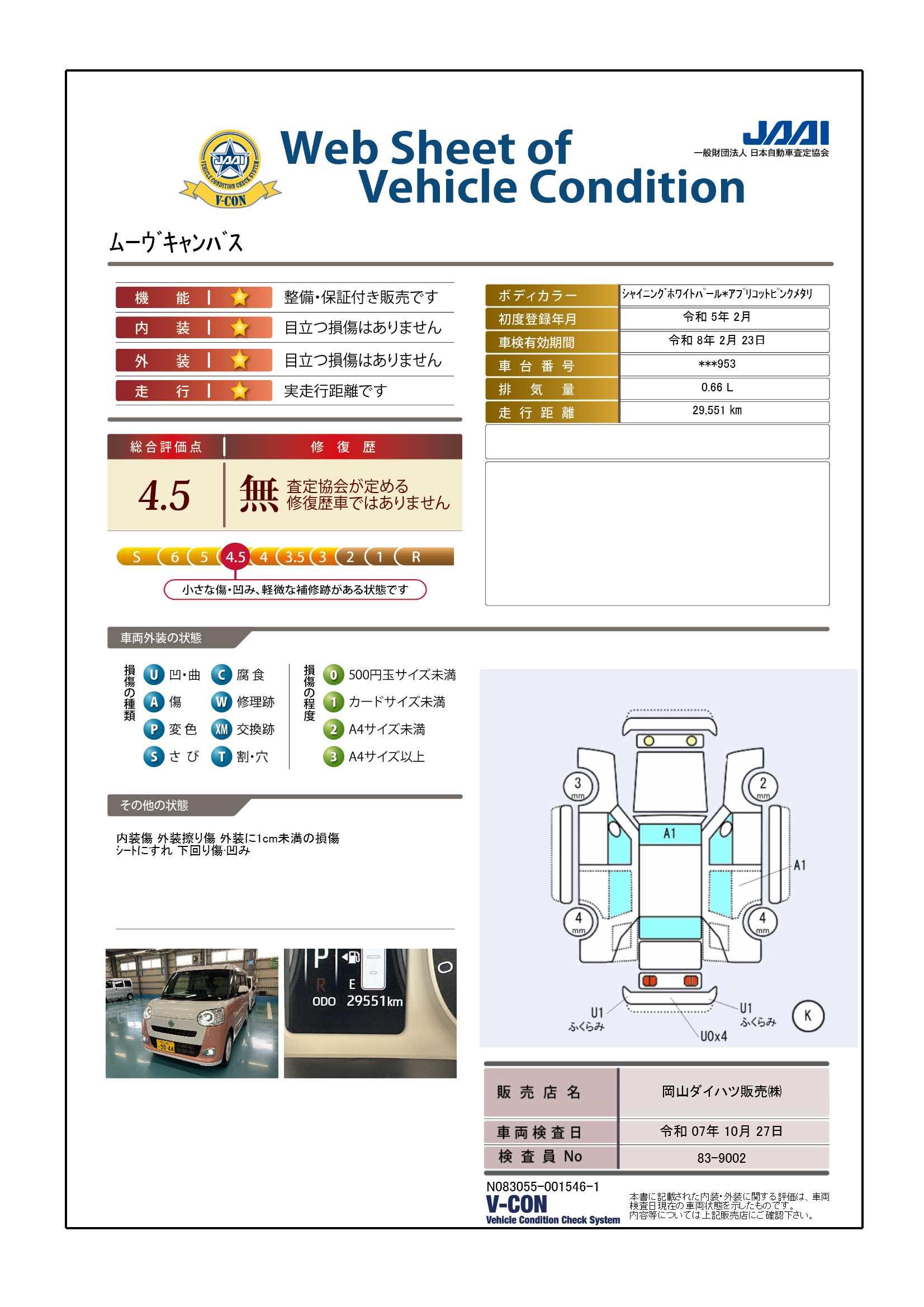 [保証付]:12ヶ月・走行無制限 新車保証継承あり、有償延長保証:対象 |