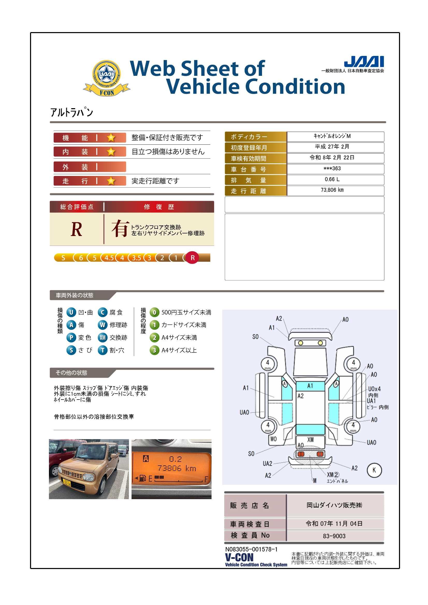 | 保証について | [保証付]:3ヶ月・3000km ※いずれか早い時期が保証適用の条件となります。 |