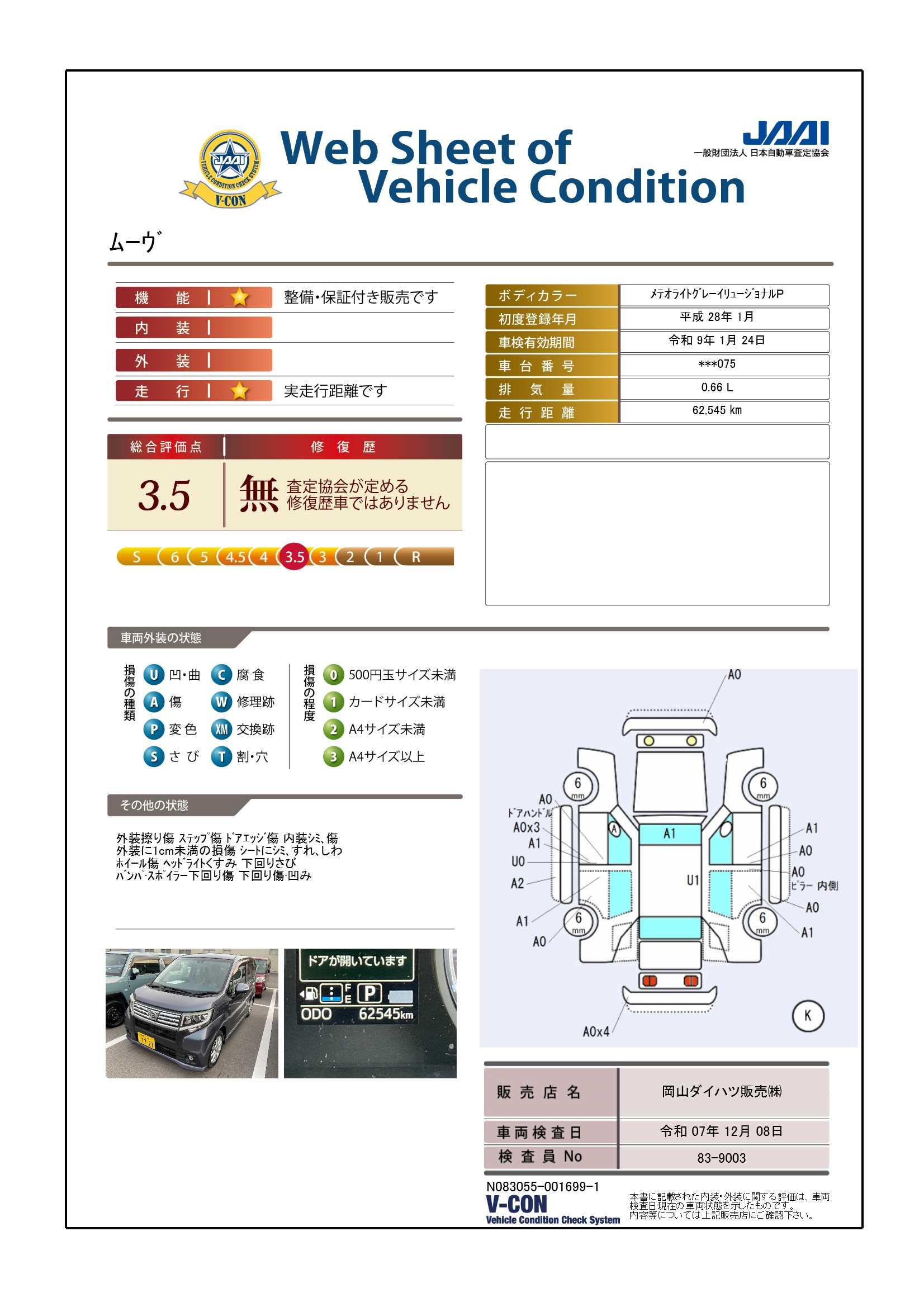 | 保証修理受付先 | 岡山ダイハツのご購入店舗までご連絡ください。全国約700か所のダイハツのお店で、新車同等レベルの保証修理が受けられます。お引越し先や旅先でのトラブルにも、近くのダイハツのお店が対応いたします。 |
