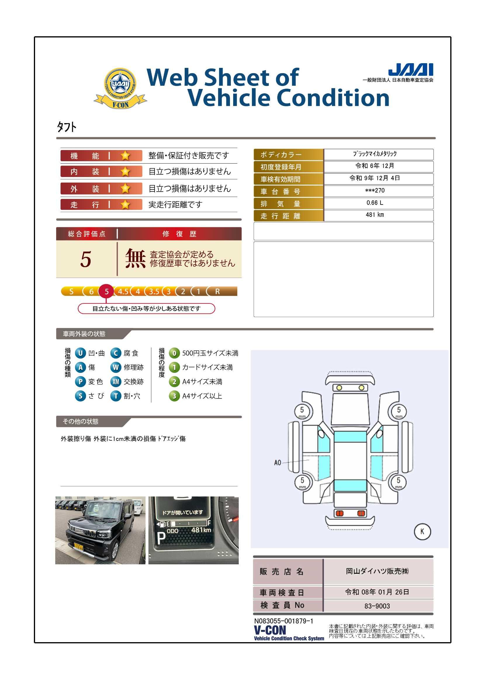 | 保証修理受付先 | 岡山ダイハツのご購入店舗までご連絡ください。全国約700か所のダイハツのお店で、新車同等レベルの保証修理が受けられます。お引越し先や旅先でのトラブルにも、近くのダイハツのお店が対応いたします。 |