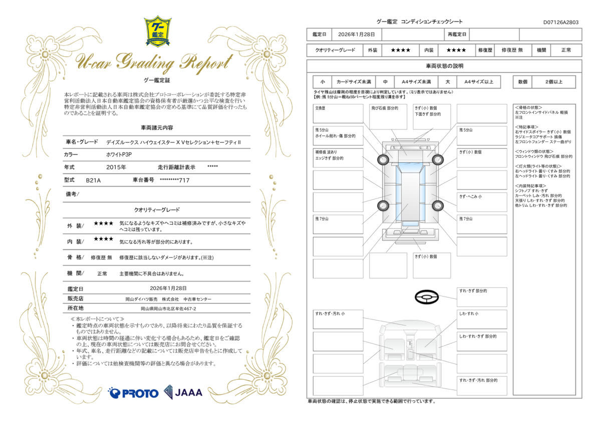 | 保証項目 | 新車メーカー保証に準じた保証(エンジン・エアコン・トランスミッション他)を1年間無償で受けられます。さらに、別途有償保証の「まごころ保証プラス」「まごころ保証プラスα」をご用意しております。 |